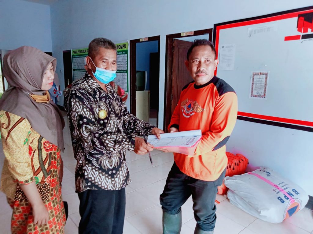 Dompu, Jeratntb.com – Badan Penanggulangan Bencana Daerah (BPBD) Kabupaten Dompu menyerahkan bantuan berupa terpal dan selimut masing-masing 10 lemabar kepada Lurah Bada Kecamatan Dompu, Kamis (25/2-2021).