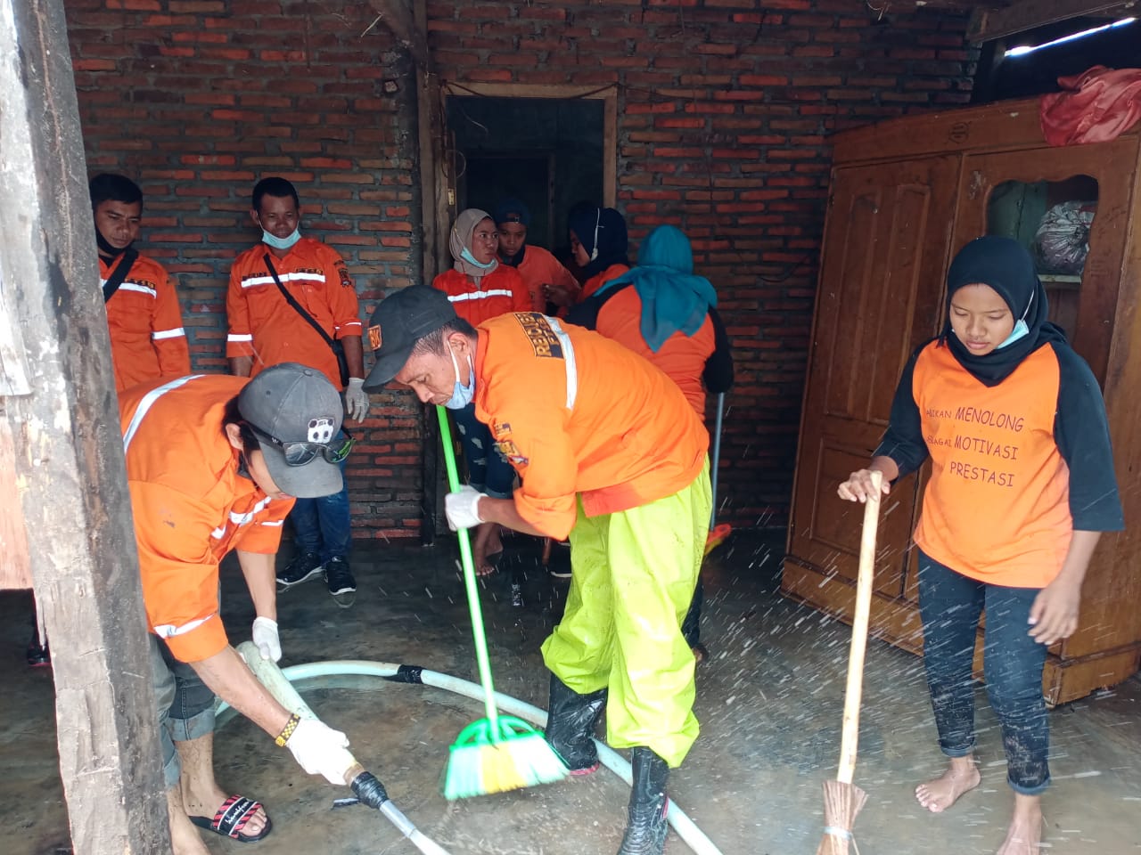 “Al hasil, kami bersama relawan lainnya dan masyarakat setempat gotong royong membersihkan pemukiman warga dari material kayu dan lumpur akibat banjir”, terangnya