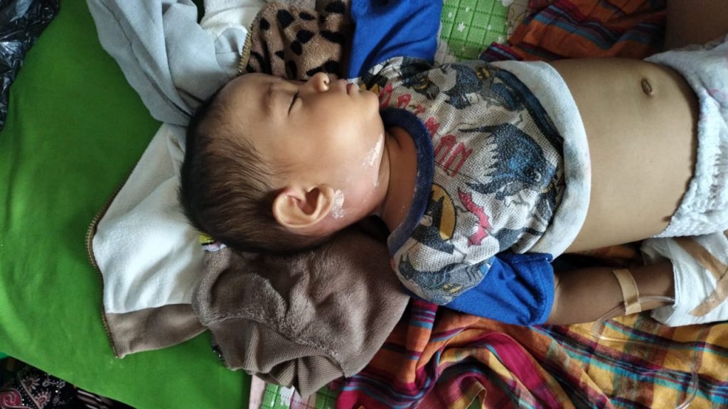 Anak ke dua dari dua bersaudara dari pasangan ini bernama Rizki baru berusia 1,2 tahun sejak banjir jumat pekan lalu harus dirawat inapkan di rumah sakit Muhammadiyah kota Bima karena menderita benjolan pada leher sebelah kanan.