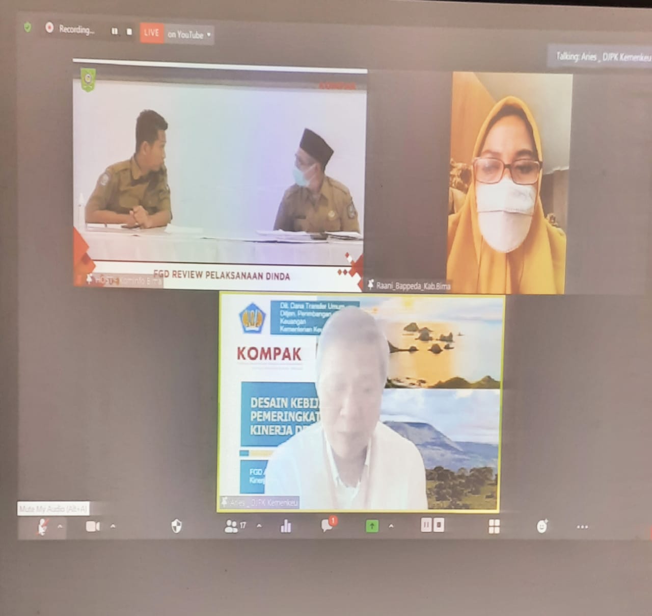 Pada kesempatan tersebut, Koordinator KOMPAK Bima Asrullah Lukman menjelaskan, FGD ini dilaksanakan dengan secara daring bagi narasumber di tingkat Pusat dan Provinsi serta tatapmuka dengan penerapan Protokol kesehatan bagi narasumber dan peserta di tingkat kabupaten.