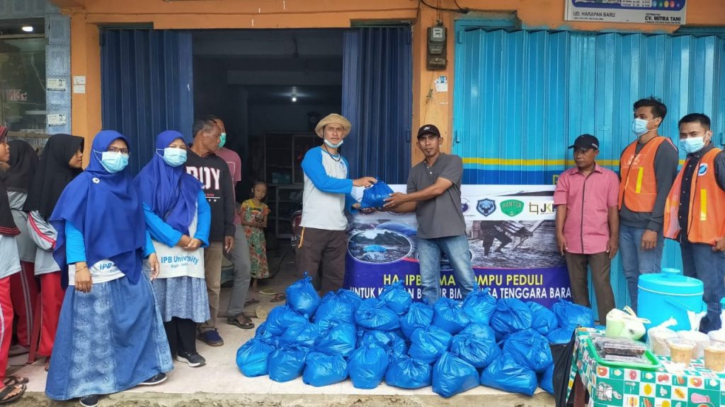 Bima, Jeratntb com – DPC HA IPB Bima Dompu – NTB dan ARM HA IPB menyalurkan paket bantuan kepada masing-masing 150 KK yang terdampak banjir di Kecamatan Kecamatan Madapangga dan Kecamatan Bolo Kabupaten Bima, Provinsi Nusa Tenggara Barat (NTB). Bantuan tersebut disalurkan langsung kepada masyarakat dengan didampingi oleh Kepala desa dan relawan di wilayah setempat. 17 April 2021.