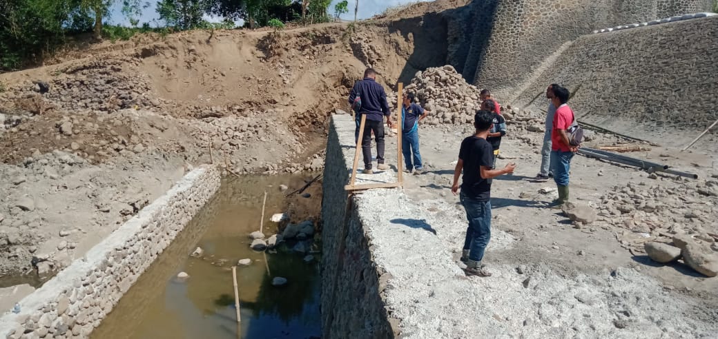 Terlihat pada titik lokasi pekerjaan, saat ini pekerja sedang mengerjakan lantai belakang pada bagian bawah tempat turunnya air pada bendung. Selain itu juga, pekerja sedang mengerjakan bagian kolam olak yang juga ambruk dihantam banjir. Untuk saluran irigasi yang menuju di sejumlah desa, pihak PT Graha Bima Konstruksi sebagai kontraktor, akan mengerjakan saluran itu setelah masa panen kedua demi menjaga hasil pertanian warga yang tak lama lagi menghadapi masa panen.