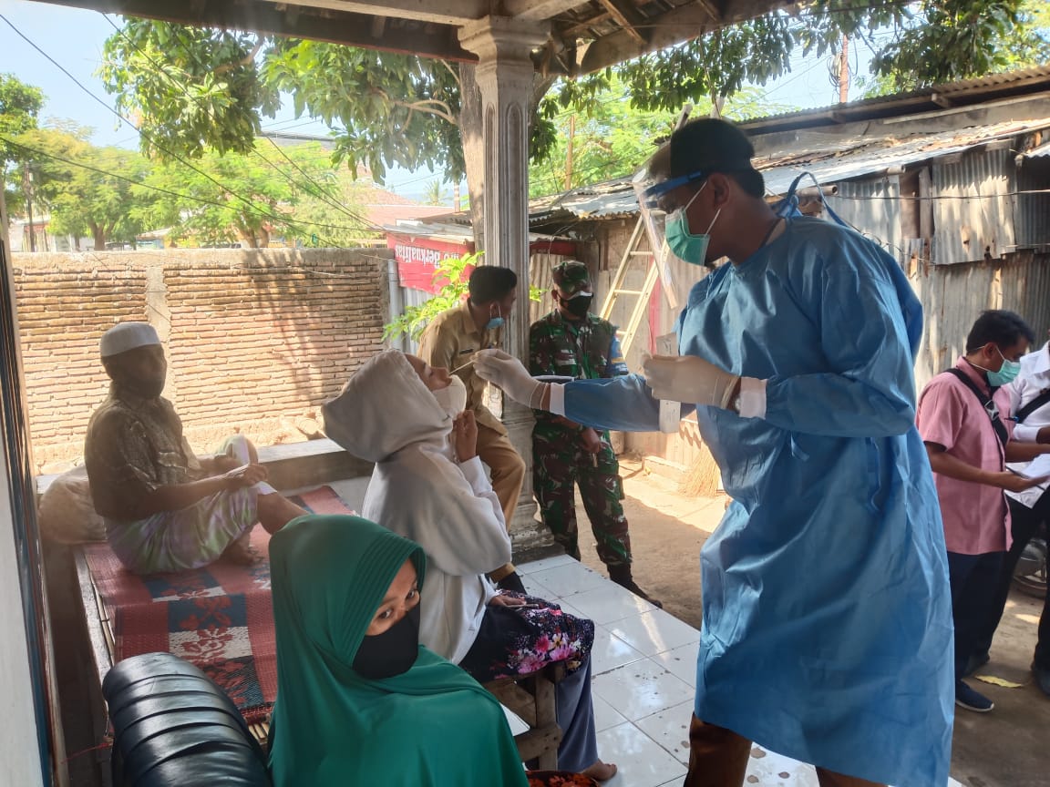 Dandim 1628/SB juga meninjau pelaksanaan Tracing contact terhadap contack erat positif Covid 19 Saudari N Desa Mantun serta swab antigen kepada keluarga suadari N dirumahnya terdiri dari 4 orang dengan hasil 2 orang hasil negatif 2 orang perempuan terkonfirmasi positif.
