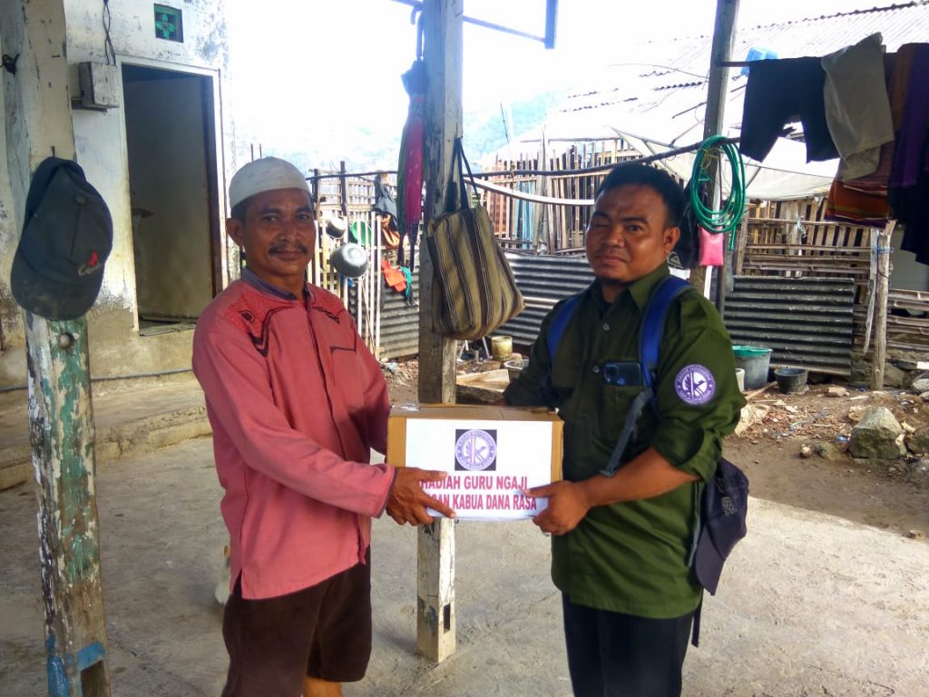 Sebagai bentuk penghargaan, Perwakilan Yayasan Kabua Dana Rasa (KADAR) Indonesia melalui perwakilannya KADAR Bima menyerahkan hadiah paket untuk guru ngaji. Jum’at (20/8)