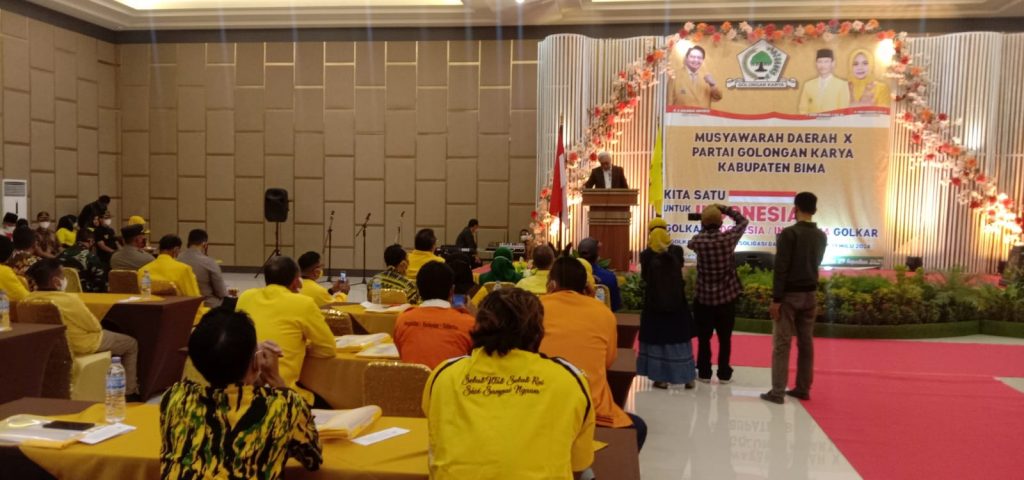 Bima, Jeratntb. com – Dewan Pimpinan Daerah (DPD) II Partai Golongan Karya (Golkar) Kabupaten Bima Gelar Musda Ke -X, acara tersebut digelar di aula pertemuan hotel Marina INN Kota Bima, Minggu, (29/8/2021) pagi tadi.