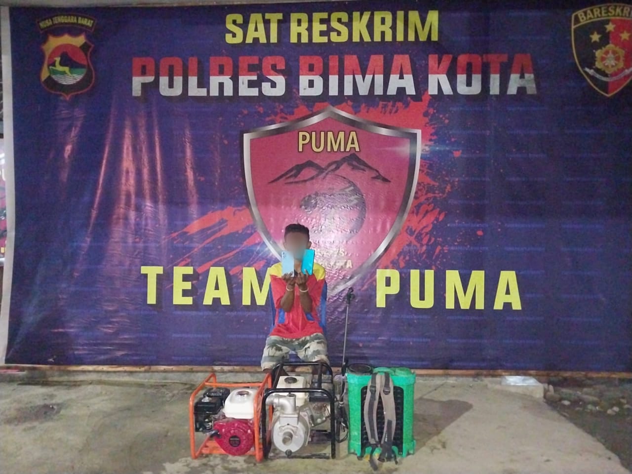 Kota Bima, Jeratntb.com – Tim Puma 1 berhasil menangkap seorang warga Lambu Kabupaten Bima, karena mencuri mesin pompa air.