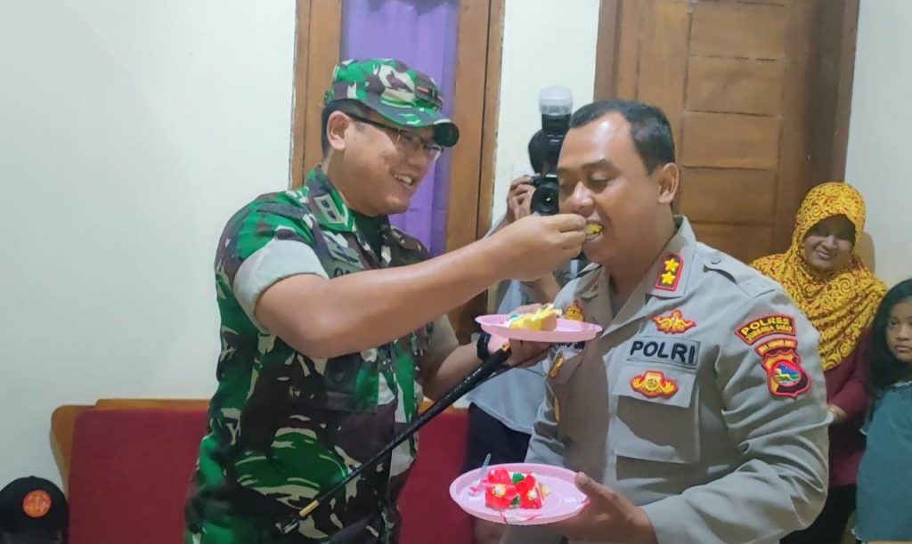 Menjelang hari jadi Byangkara Ke-76 Pukul 00 Dini hari Dandim 1628/SB Letkol Inf Octavian Englana Partadimaja Para perwira staf dan perwakilan anggota Kodim 1628/SB memberikan surprise kepada Kapolres AKBP Heru,Muslimin S.I.K., M.IP., dan seluruh Danramil Ke Polsek Polsek sepolres KSB, Jumat (01/07/2022).