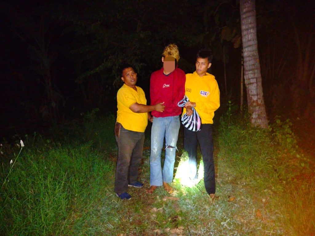 “Pelaku AD di amankan di salah satu rumah warga ditepi pantai saat sedang bersembunyi, diketahui tersangka AD kabur lalu bersembunyi di salah satu rumah warga karena sempat akan di hakimi oleh massa, Minggu (23/04/23) pukul 02.30 Wita dini hari.” terang Kapolsek.