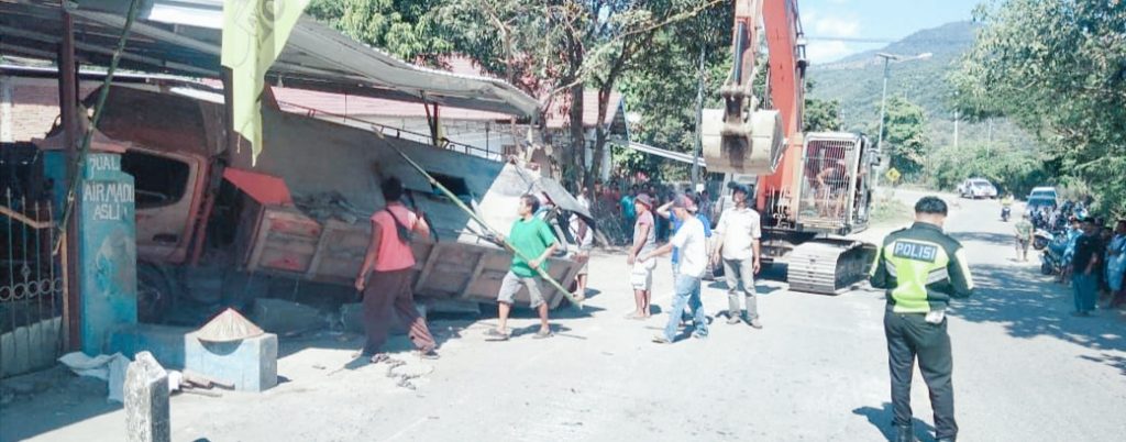 Kronologis kejadian sebagaimana keterangan saksi mata yang melihat langsung peristiwa lakalantas tersebut jelas kasi Humas, truk bks air itu melaju dari arah timur dan tetiba menabrak rumah milik M Nor Mursalim tersebut.
