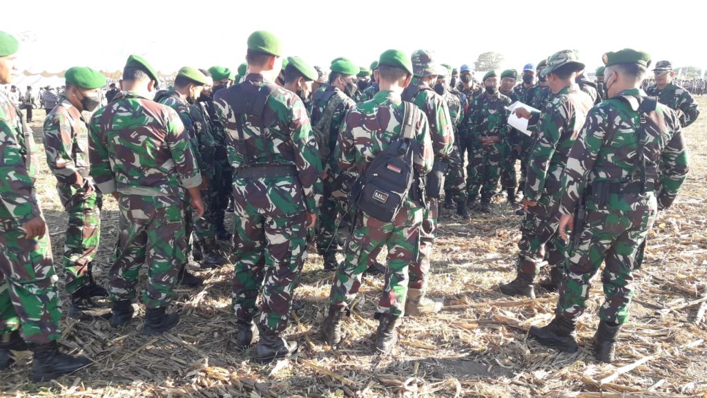 Sumbawa Besar, Jeratntb.com – Personel Kodim 1607/Sumbawa yang terlibat pengamanan MXGP of Indonesia Samota 2023 mengikuti Apel Pengecekan Pasukan, Jumat (23/06/2023).