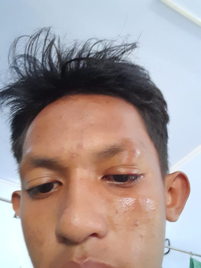 Akibat penganiayaan itu korban mengalami luka memar di pipi dan di dahi. Selain itu, korban juga mengalami luka serius di bagian kelopak mata hingga membengkak.