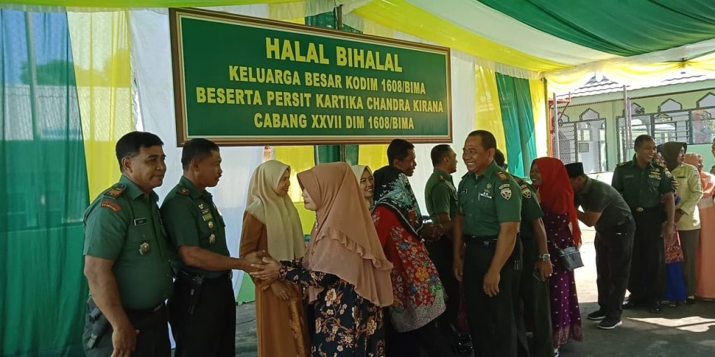 Hal ini disampaikan Dandim 1608/Bima Let. Inf Bambang Kurnia Eka Putra dalam acara Halal Bihalal Kodim 1608/Bima Beserta Persit KCK Cab XXVII Dim 1608/Bima di Makodim 1608/Bima pada hari Jumat 21 Juni 2019. Acara yang dihadiri oleh seluruh perwira jajaran Kodim, anggota militer, PNS, Persit serta personel dari Subdenpom Bima, Kanminvet Bima juga menghadirkan H. Eka sebagai pembicara untuk memberikan siraman rohani kepada seluruh peserta acara. Kegiatan diakhiri dengan salam-salaman antara seluruh personel yang hadir serta dilanjutkan dengan makan bersama.