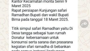 Bima, JeratNTB.com-Rencana safari ramadhan Bupati dan Wakil Bupati Bima di Kecamatan Monta tercium aroma pungutan liar (Pungli). Hal ini terungkap saat rapat koordinasi Muspika Kecamatan Monta bersama sejumlah kepala sekolah di Aula Kantor Camat Monta, Senin (10/3/2025).