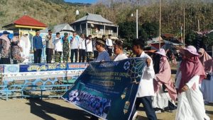 Para peserta tampak antusias mengikuti kegiatan pawai ta’aruf, yang dimulai dari Lapangan Samudra Desa Sakuru dan berakhir di Lapangan Desa Monta.