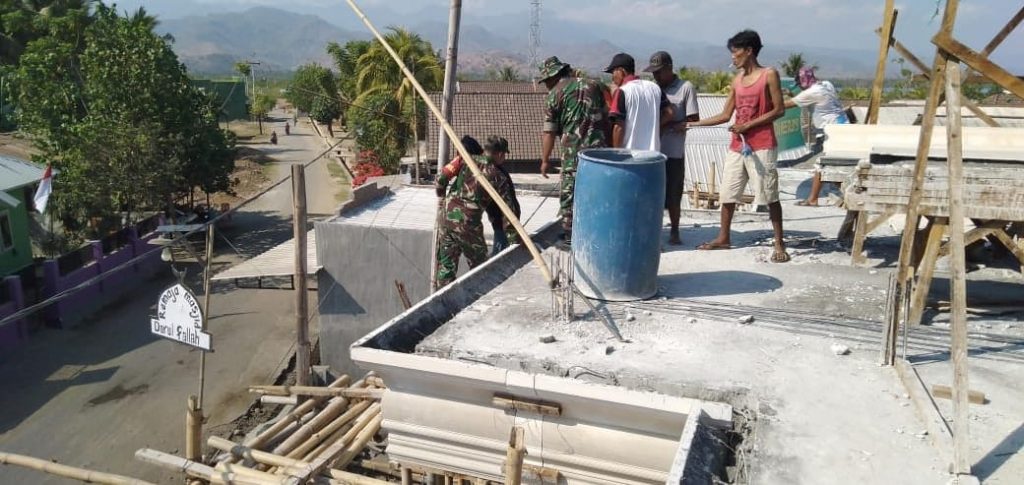 Untuk meringankan pembangunan tersebut, Danramil 1607-09/Utan Rhee Kapten Inf Robert P. bersama seluruh anggotanya ikut turun melaksanakan gotong royong bersama masyarakat setempat.