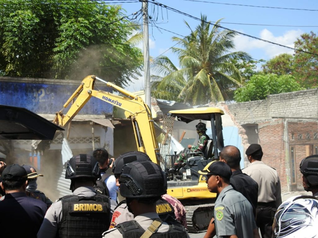 Usai pembacaaan putusan oleh juru sita Pengadilan Negeri Tingkat II Sumbawa, pelaksanaan eksekusi dilanjutkan dengan pembongkaran rumah yang dibangun oleh 17 KK dilokasi tanah tersebut. (Jr)