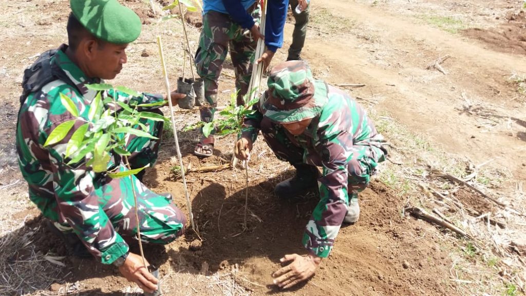 “Hari ini dilaksanakan penanaman secara simbolis beberapa jenis bibit pohon seperti nangka, kemiri, durian dan mahoni,” ujar Dandim.