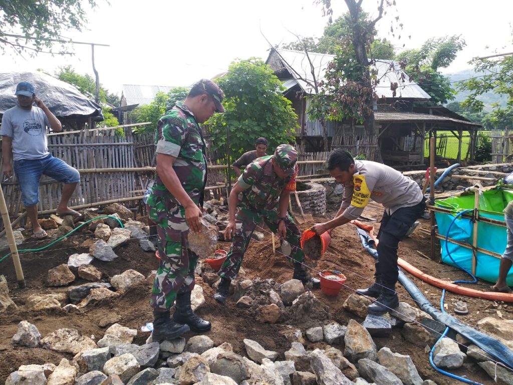 Bima, Jeratntb.com – Komunitas TNI dan Polisi yang berasal dari Desa Teke membantu membangun rumah M. Said korban kebakaran bulan lalu.