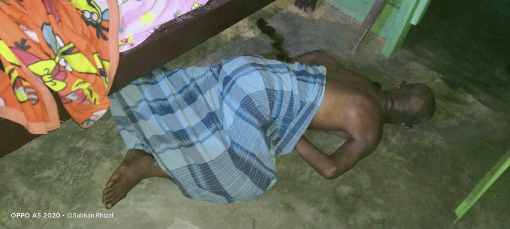 Sulaiman menuju rumah korban dan beberapa kali mengetuk pintu rumah yang terkunci dari dalam namun tidak ada sahutan, Sulaiman kemudian mengintip dari celah jendela dan melihat korban tidak bergerak dengan posisi badan terlungkup kemudian di panggil warga lainnya untuk bersama sama membantu mendobrak pintu yang terkunci , setelah pintu terbuka dilihat korban dalam keadaan meninggal dunia.