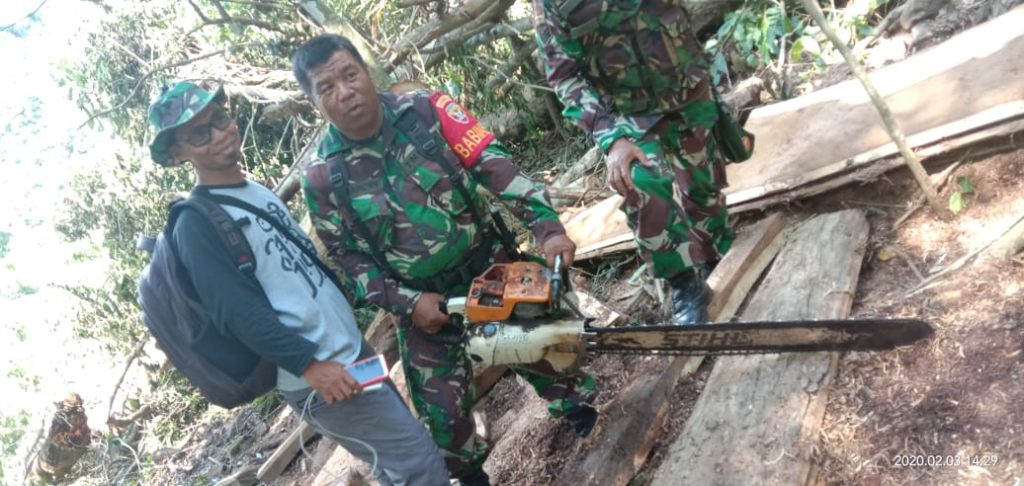 Bima, Jeratntb.com – Danramil 1608-05/Donggo Kapten Inf Sininot Sribakti bersama anggotanya melaksanakan patroli di sekitar hutan tutupan negara Desa Palama Kecamatan Donggo Kabupaten Bima setelah mendapat informasi pembalakan liar di hutan tutupan dari salah seorang warga desa setempat.