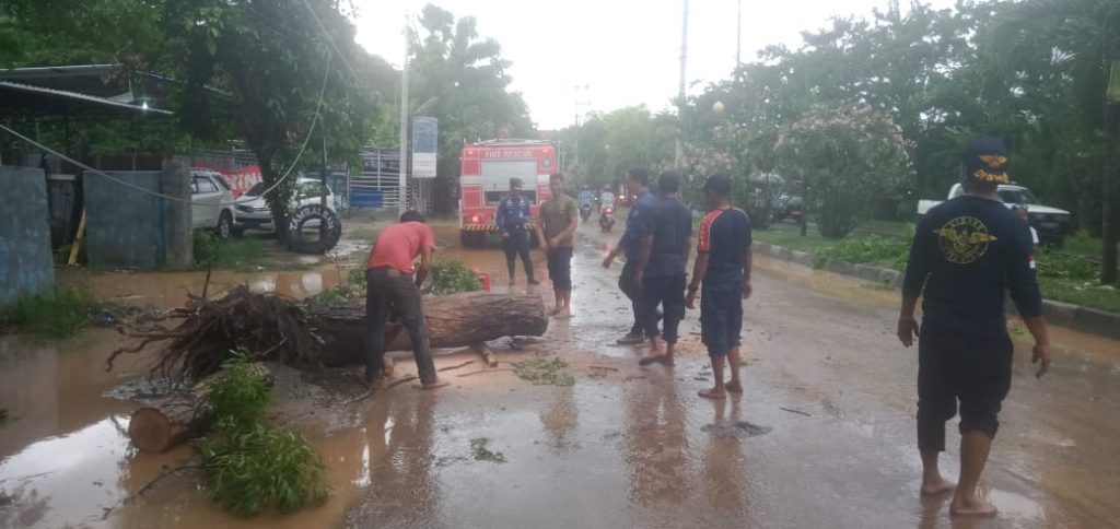Setelah mendapatkan laporan, Tim Damkar Kota Bima langsung menuju lokasi dan mengevakuasi pohon tersebut.