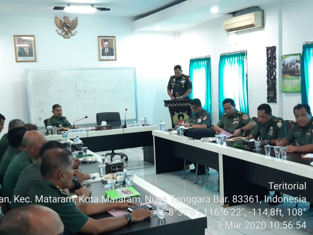 Mataram, Jeratntb.com – Tim kelompok kerja staf ahli Kepala Staf TNI AD melaksanakan kunjungan kerja ke Korem 162/WB, Rabu (3/3). Kunjungan kerja kali ini dalam rangka mengumpulkan data tentang teritorial yang berkaitan dengan “Sinergitas TNI AD Dengan Kementerian Pembangunan Daerah Tertinggal dan transmingrasi (PDTT) Republik Indonesia Guna Percepatan Pembangunan Desa Tertinggal” khususnya di wilayah Nusa Tenggara Barat.