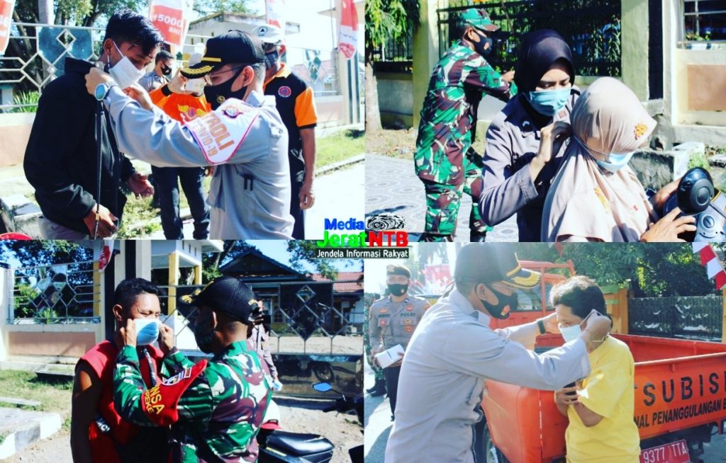 Kegiatan tersebut dipimpin langsung oleh Kapolres Dompu, AKBP Syarif Hidayat, SH, S.I.K., bersama Dandim/1614 Dompu Letkol Inf. Ali Cahyono, S.Kom,. diawali dengan razia terhadap masyarakat yang tidak menggunakan masker dan hlem.
