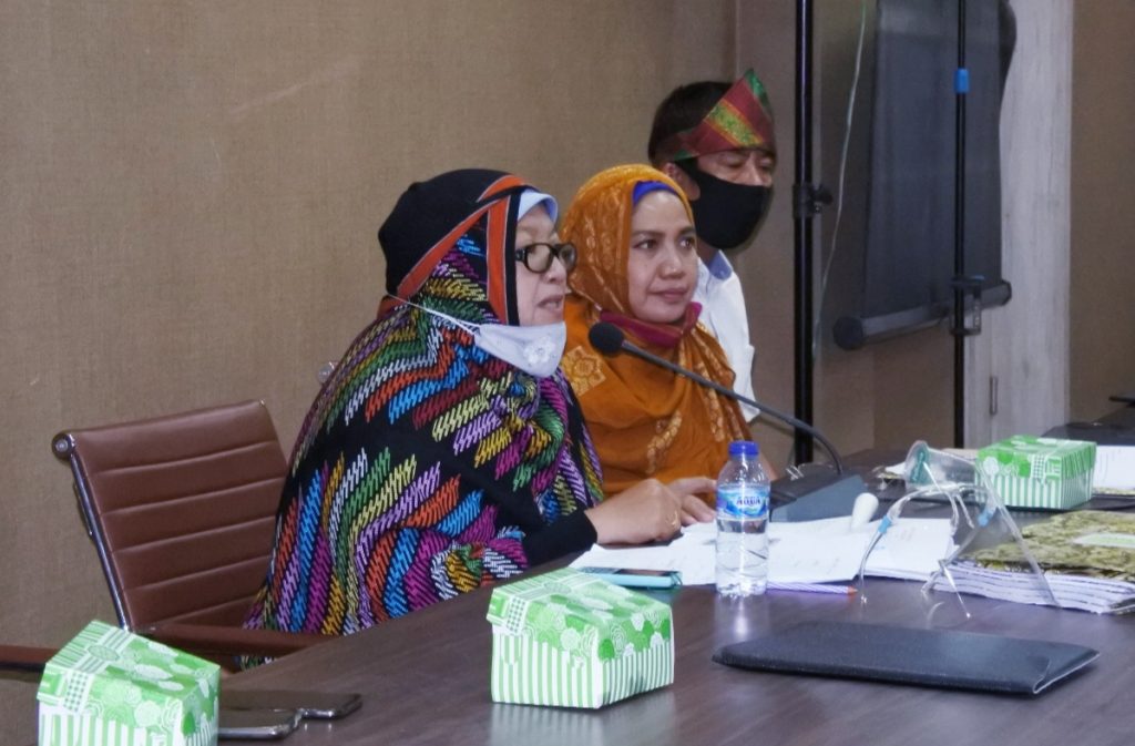 Kepala Bidang Perencanaan Pembangunan Sosial Budaya Bappeda Kabupaten Bima Raani Wahyuni ST,. MT,. M.Sc dan anggota tim memaparkan beberapa aksi konvergensi stunting di Kabupaten Bima.