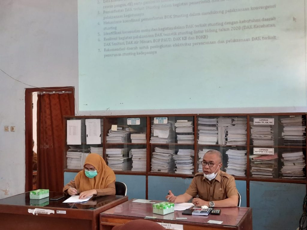 Pada rapat yang juga dihadiri Sekretaris Bappeda H. Fahrudin S.Sos, M.AP tersebut, Kepala Bappeda mengungkapkan, “DAK stunting menyebar ke sejumlah perangkat daerah terkait, maka perlu dilakukan identifikasi baik DAK fisik maupun DAK Non-Fisik untuk mengoptimalkan pengelolaan dan pencapaian target penurunan stunting di tingkat daerah. Oleh karena itu perlu dilakukan koordinasi lintas sektoral untuk memastikan tata kelola berlangsung sesuai dengan target yang sudah ditetapkan”. Jelasnya.
