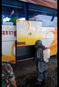 Cegah Penyebaran COVID-19 di Wilayah Bima, Bus Langsung Indah Disemprot Disinfektan