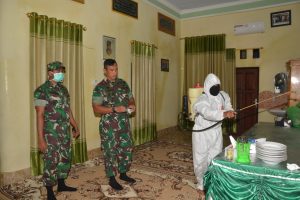 Korem 162/WB Lakukan Penyemprotan Disinfektan di Ponpes Qomarul Huda Loteng