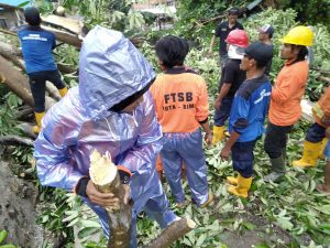 Reaksi Cepat, BPBD Didampingi FTSB Bersama Masyarakat Bersihkan Pohon Tumbang