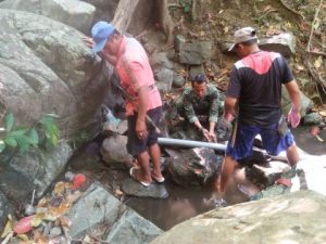 Minim Air Bersih, Babinsa Semamung Bersama Warga Pasang Pipa Saluran Air